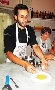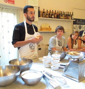 Then came time to create the main courses; Ravioli with burro e salvia and Tagliatelle with Bolognese. Half of us stayed at the tables and made our pasta, the other half went with Andrea into the kitchen to make the sauces.