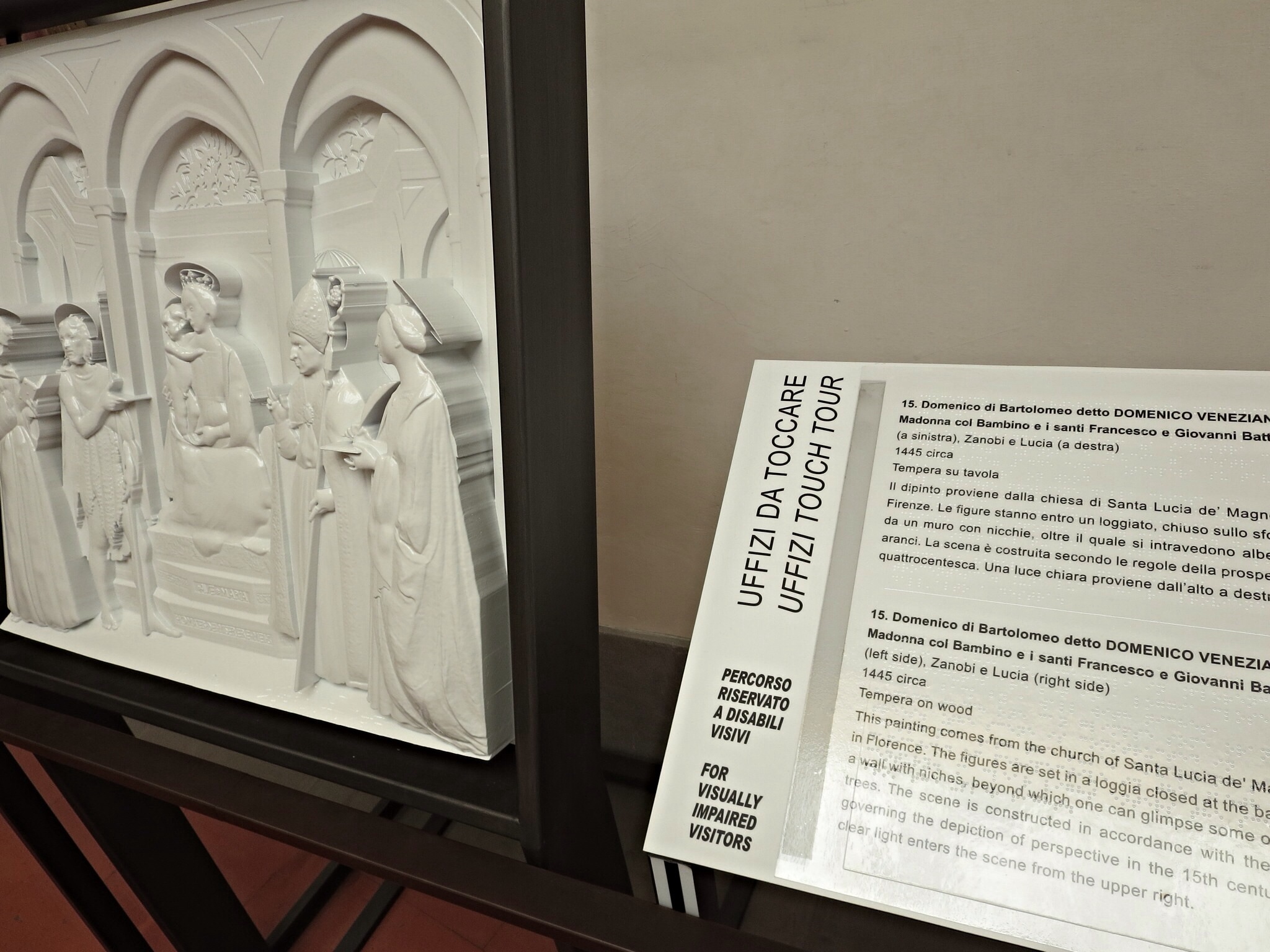 Near several works of art, I notice these smaller, dimensional white pieces. These are to allow the vision impaired to experience the masterpiece as well….very cool..