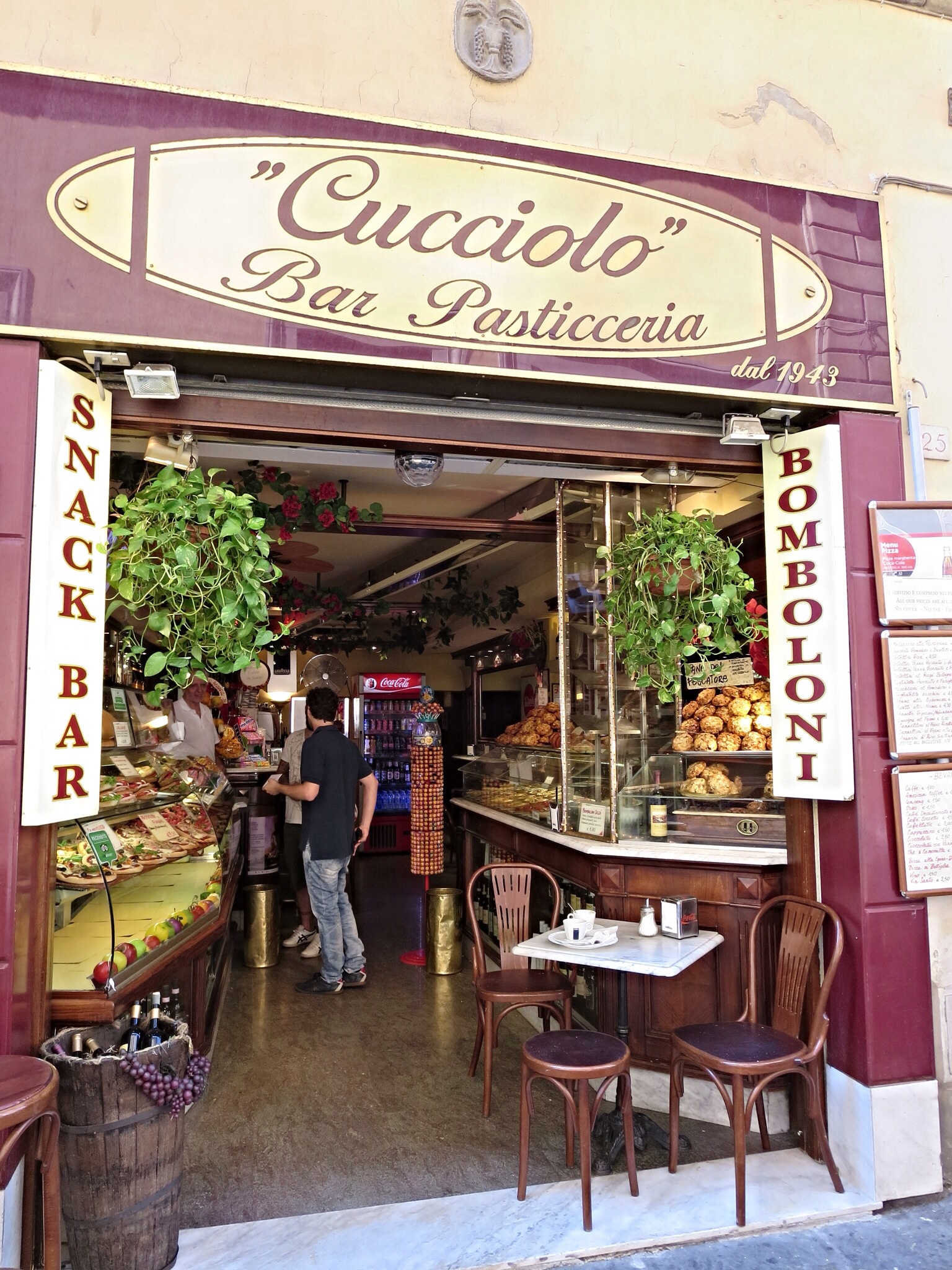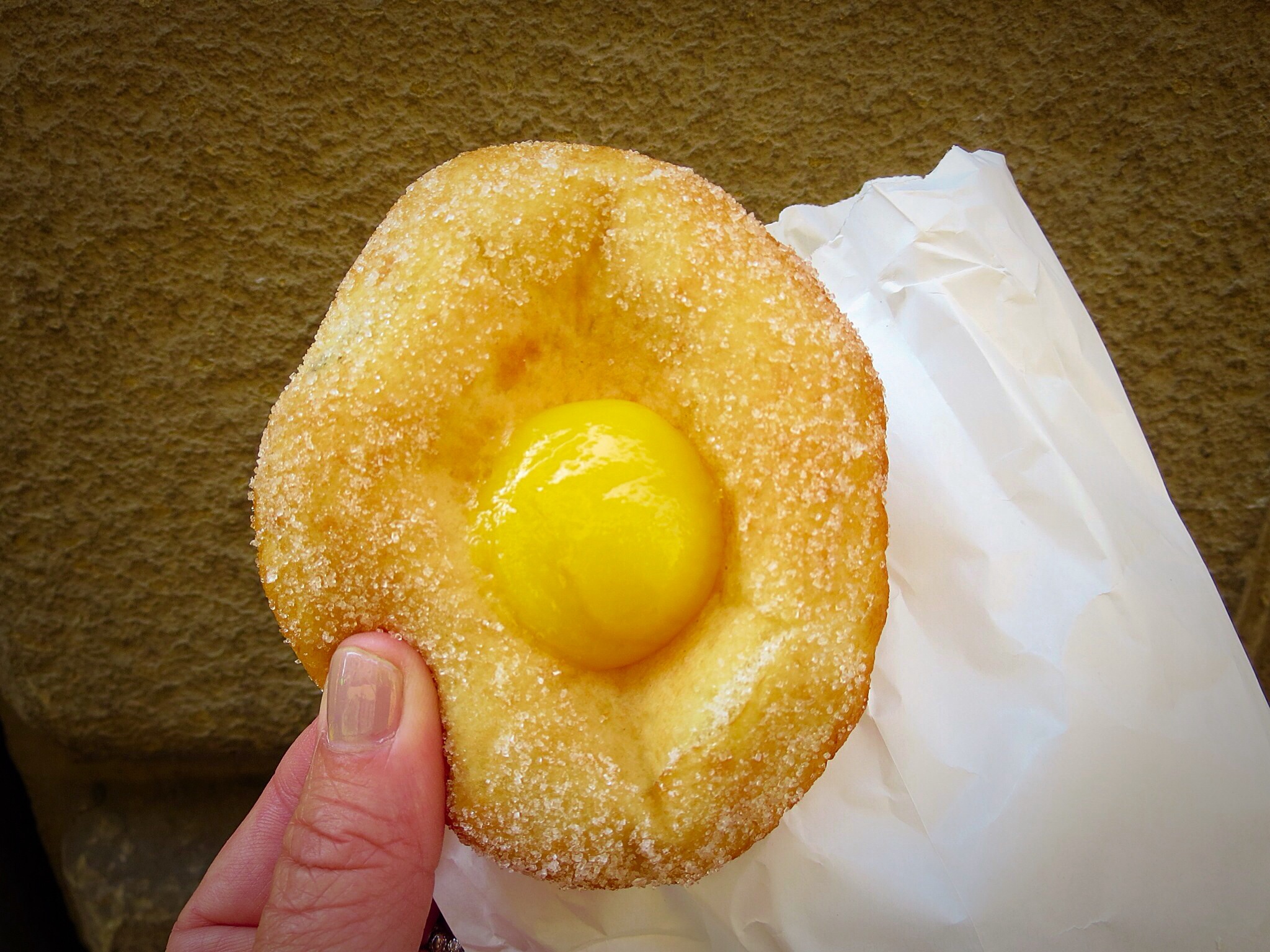 I have a few notes of places to eat that are a “must”. I have gathered this short list from other blogs, the food channel and friends. This morning I am on the look out for “Cucciolo”. At this pasticceria you are suppose to find the best bomboloni around. I think I should give it a try but feel sure it cannot surpass one I stumbled upon on my last visit. And as I approach, I smile. This is the exact place I stumbled upon. I remember coming in need of a place to sit, cool off and have a snack and being so taken by my sweet, crunchy find.