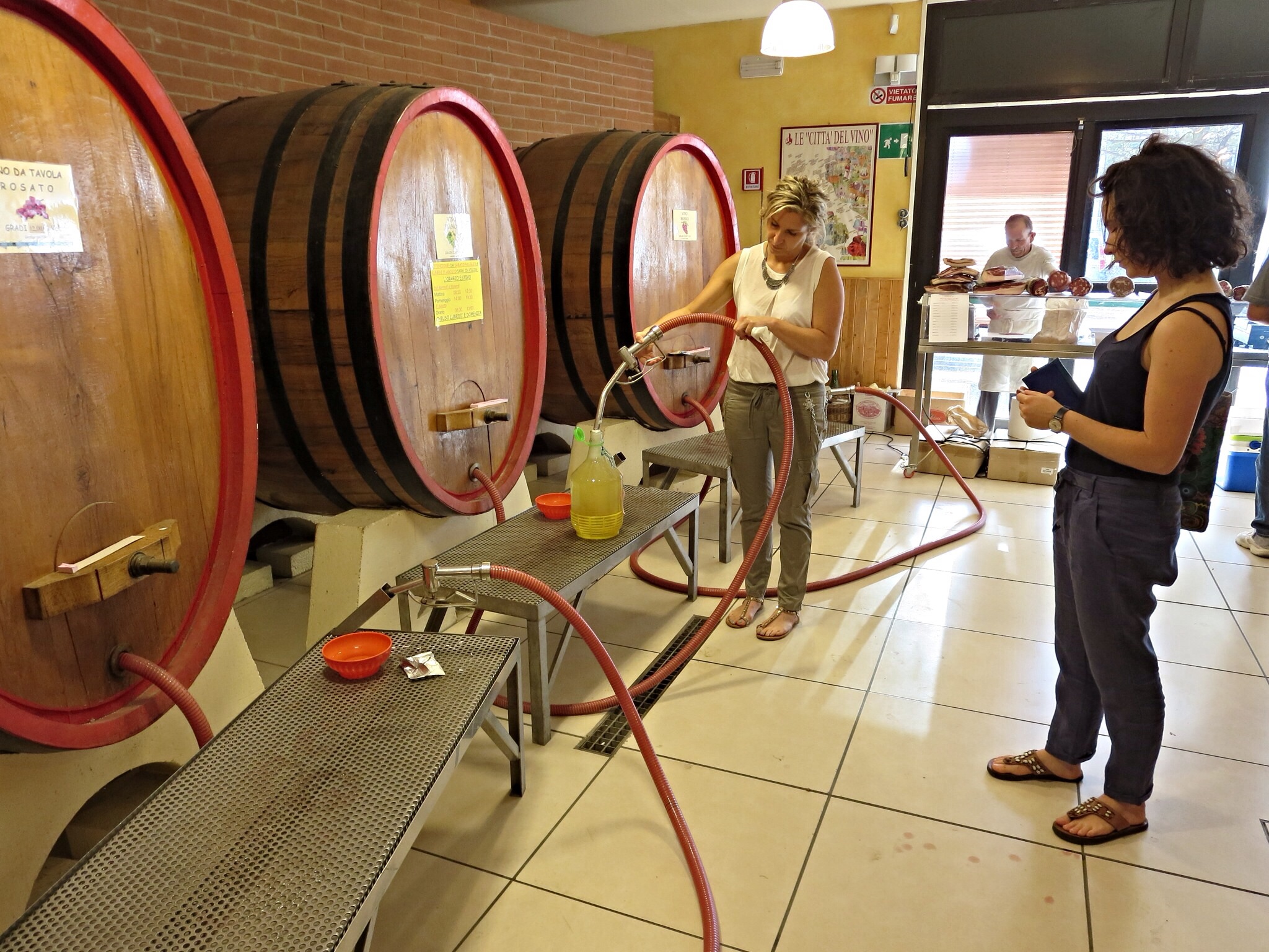 Before we entered the market, Costanza laughed as she told me that wine, both rosso e bianco were served from a “pump-a…like-a you do-a the petro”. And sure ’nuff…Fill ‘er up!
