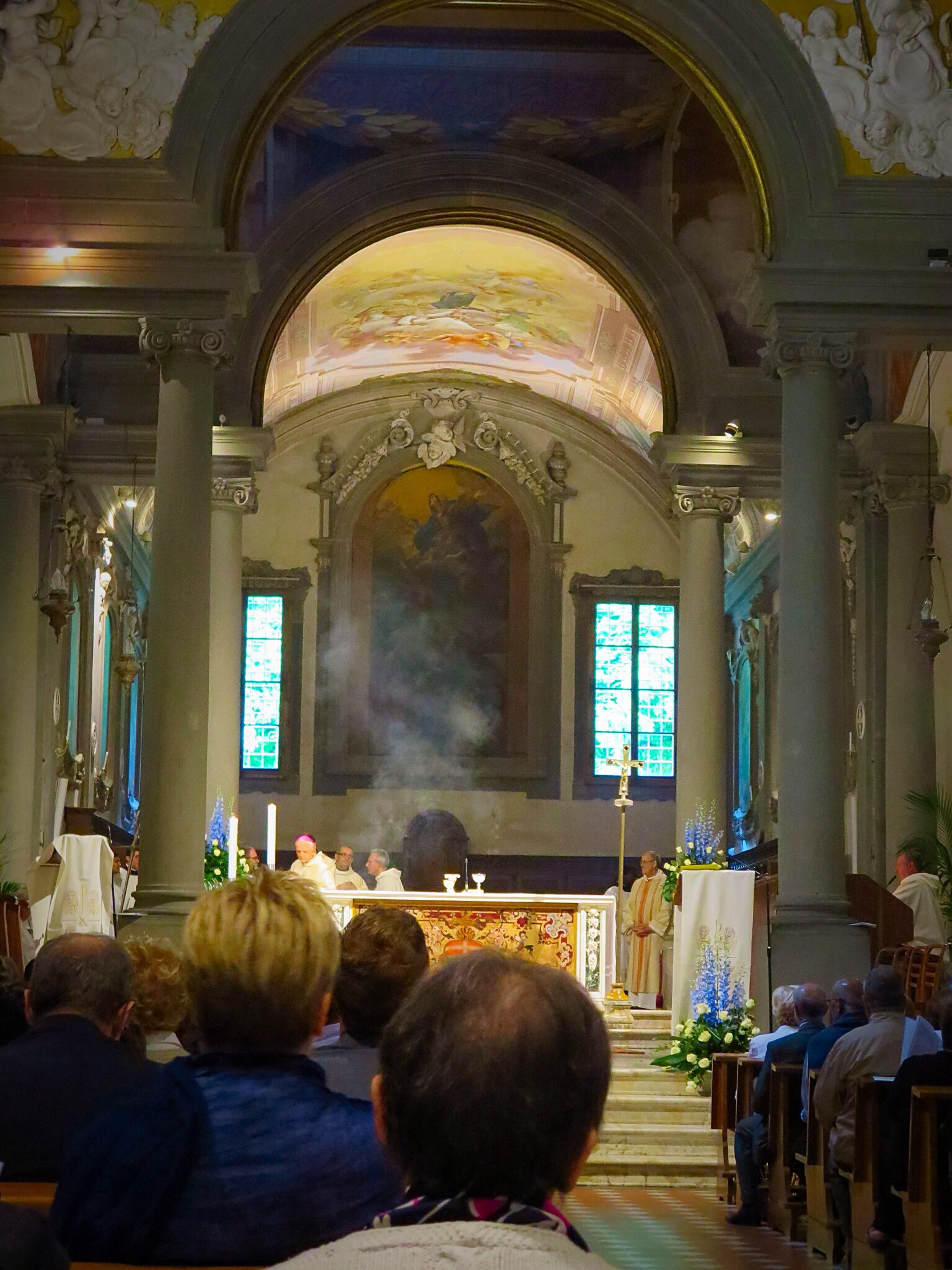 Both Constanza and I were happy to find mass beginning and decided to attend. Not only was attending mass in such a beautiful, historic church special but we were fortunate enough to have stumbled upon a special mass in which the Bishop was presiding over. From what we could gather, two new priest were being ordained or receiving Holy Orders. The spicy smell of incense filled the dark space.