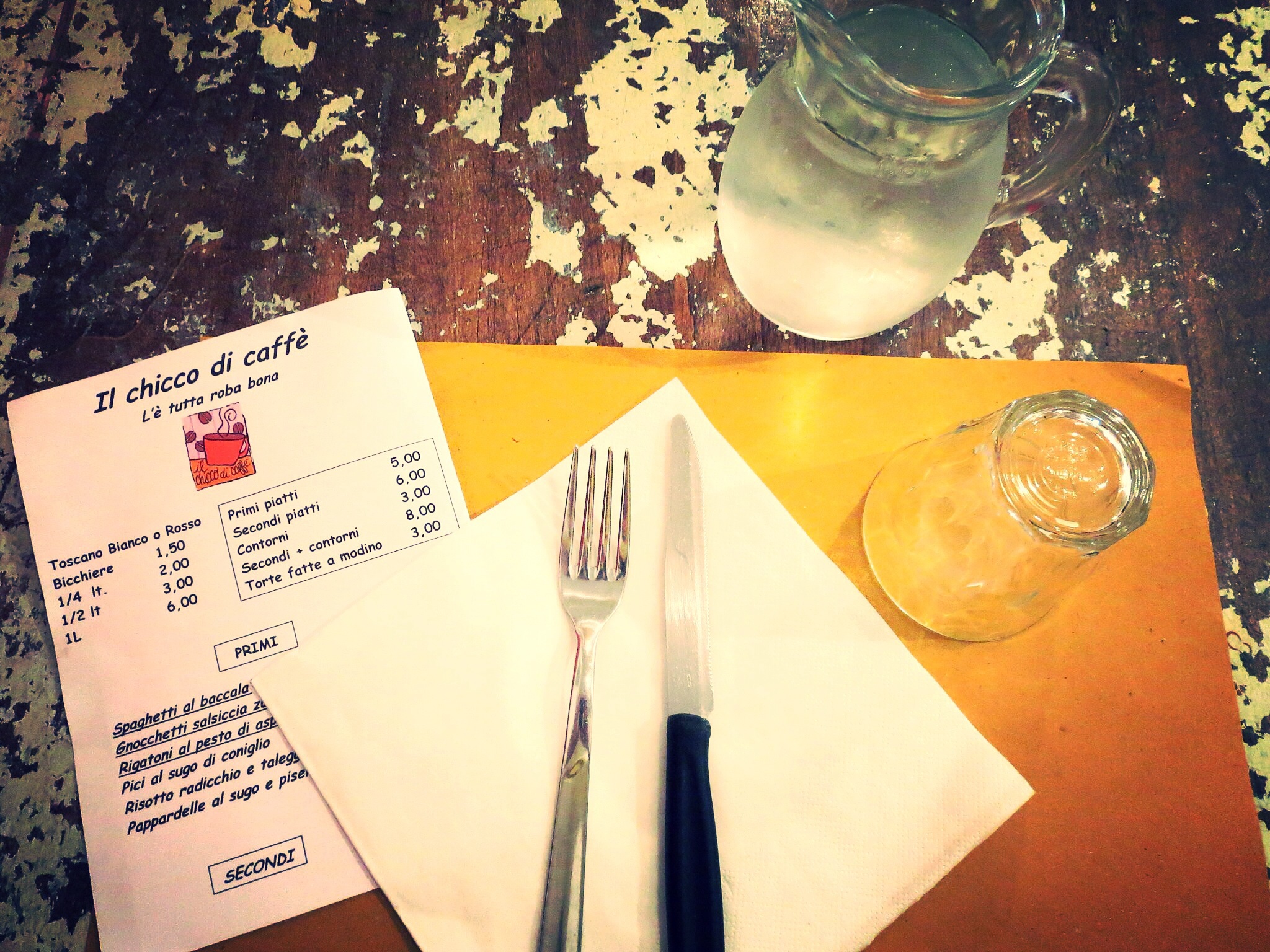 On our way down, we decide we’d like a nice, light dinner and a nice, bicchiere di vino freddo. We stop in the San Niccolo area and enjoy just that.