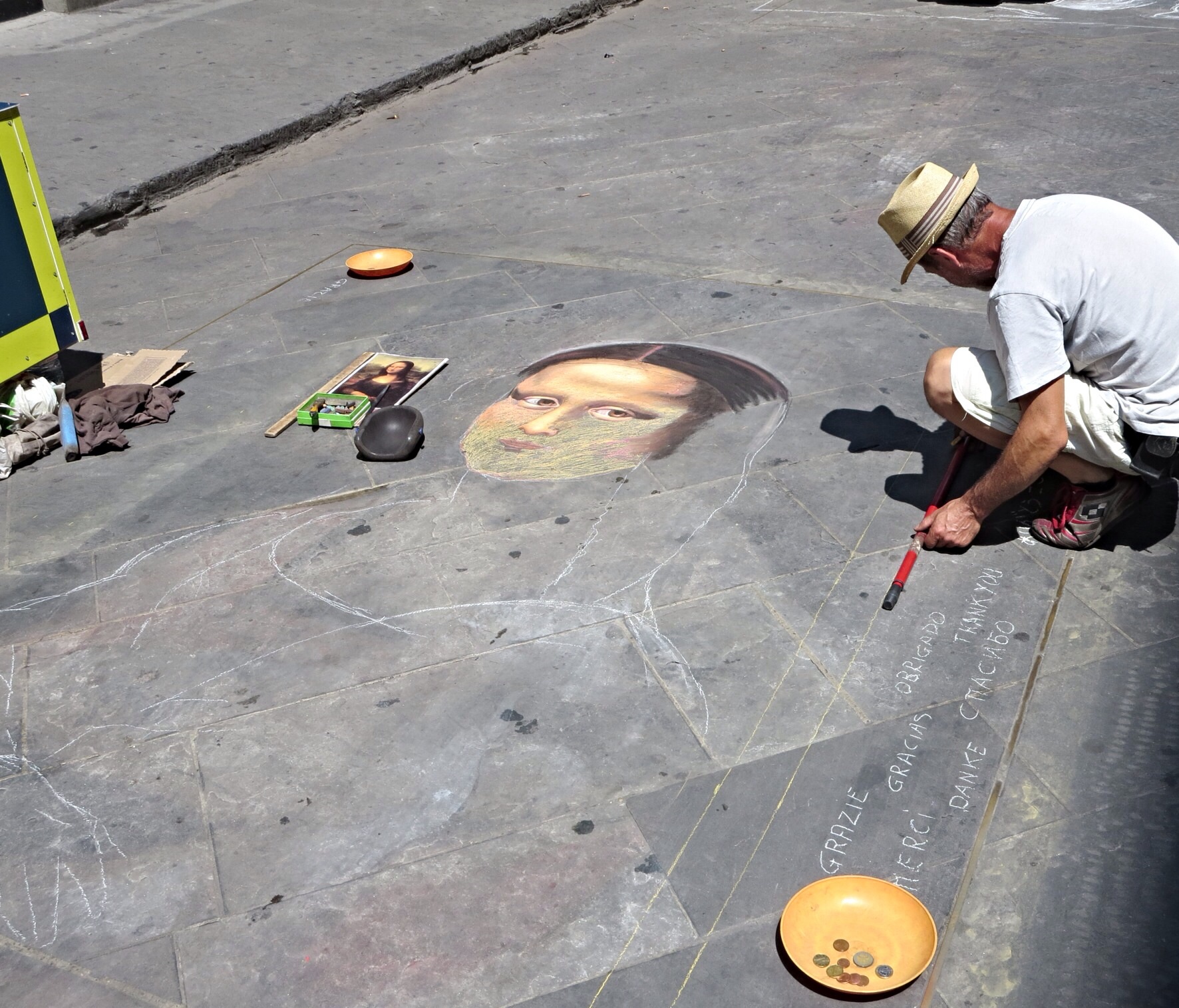 I think roaming the streets of Firenze late, late in the night and early, early in the morning would be an adventure. As much walking around as I have done, I have yet to see any street artist (besides the chalk artists) in the act. I would love to see the process and speed at which they work.